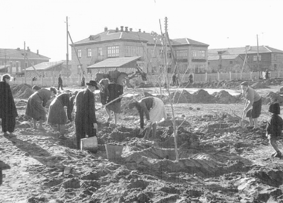 В 1951 г. общая площадь улиц, площадей и набережных равнялась 1620 тыс. кв. м, из них с твердым покрытием — 113 тыс. кв. м, с асфальтовым — 57 тыс. кв. м132. В 1951 г. построена баллюстрада на берегу Волги с асфальтовым тротуаром вдоль нее. Она стала любимым местом прогулок горожан. После открытия в 1952 г. памятника К.В. Иванову сквер стал носить его имя. На другом конце города, в Лакреевском лесу, в середине 1950-х гг. разбит парк, в 1957 г. получивший статус городского парка культуры и отдыха им. 40-летия Великого Октября. В конце пр. Ленина одновременно с установкой памятника В.И. Чапаеву в 1960 г. разбит сквер, названный в его честь. К середине 1950-х гг. протяженность городских улиц, проездов и набережных составляла 91,2 км, из которых замощено 27%, тротуаров — 182,4 км, из них с разного рода покрытием — 15,1%. Освещалась электричеством 1/4 часть улиц, но на большинстве из них были только отдельные электроточки, лишь ул. К.Маркса и Ленинградской имели нормальное освещение. Спустя десятилетие ситуация улучшилась незначительно: в сентябре 1964 г. более трети уличных светильников не работали, освещение на большинстве улиц отсутствовало.