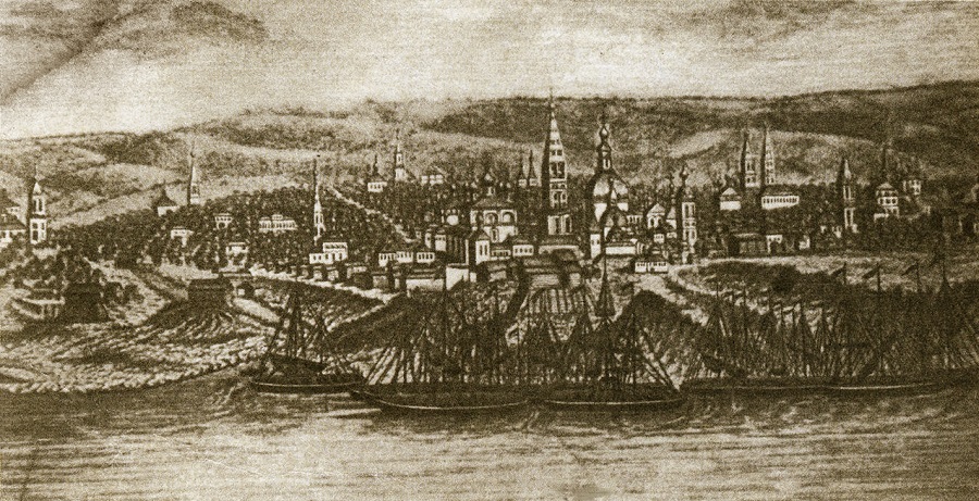 Торговля с окрестными крестьянами служила основой благополучия для горожан, поэтому в 1-й половине XIX в. почти все они знали чувашский и марийский языки. По свидетельству современников, чувашские крестьяне выделяли Чебоксары среди других городов. С подачи казанского краеведа К.Ф. Фукса, который в 1831 г. назвал Чебоксары «чувашской резиденцией», в литературе закрепилось ироничное название города как чувашской столицы. Однако по составу населения город оставался русским: в 1913 г. в нем проживало 5199 русских (91,6%), 417 чувашей (7,4%), а также незначительное количество татар, марийцев, поляков и др.23 Чебоксары славились большим количеством церквей (16) старинной архитектуры, а также колоколов (в XIX в. их насчитывалось 122, общим весом 5,5 тыс. пуд.), «доброшумный» звон которых был слышен за много километров.